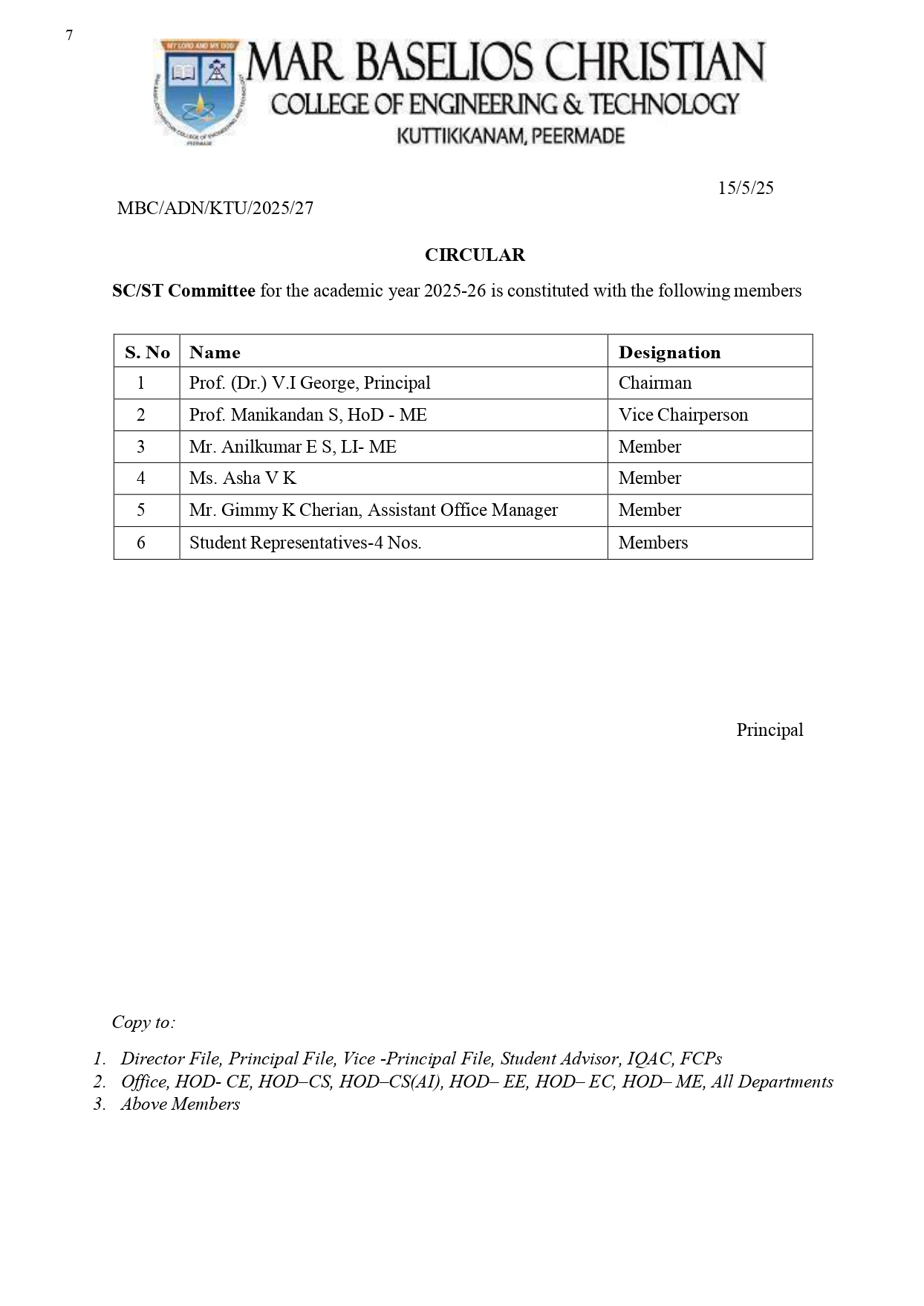 Student’s Grievances Redressal Committee