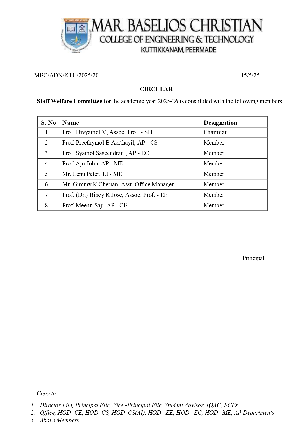 Faculty/Staff Grievances Redressal Committee